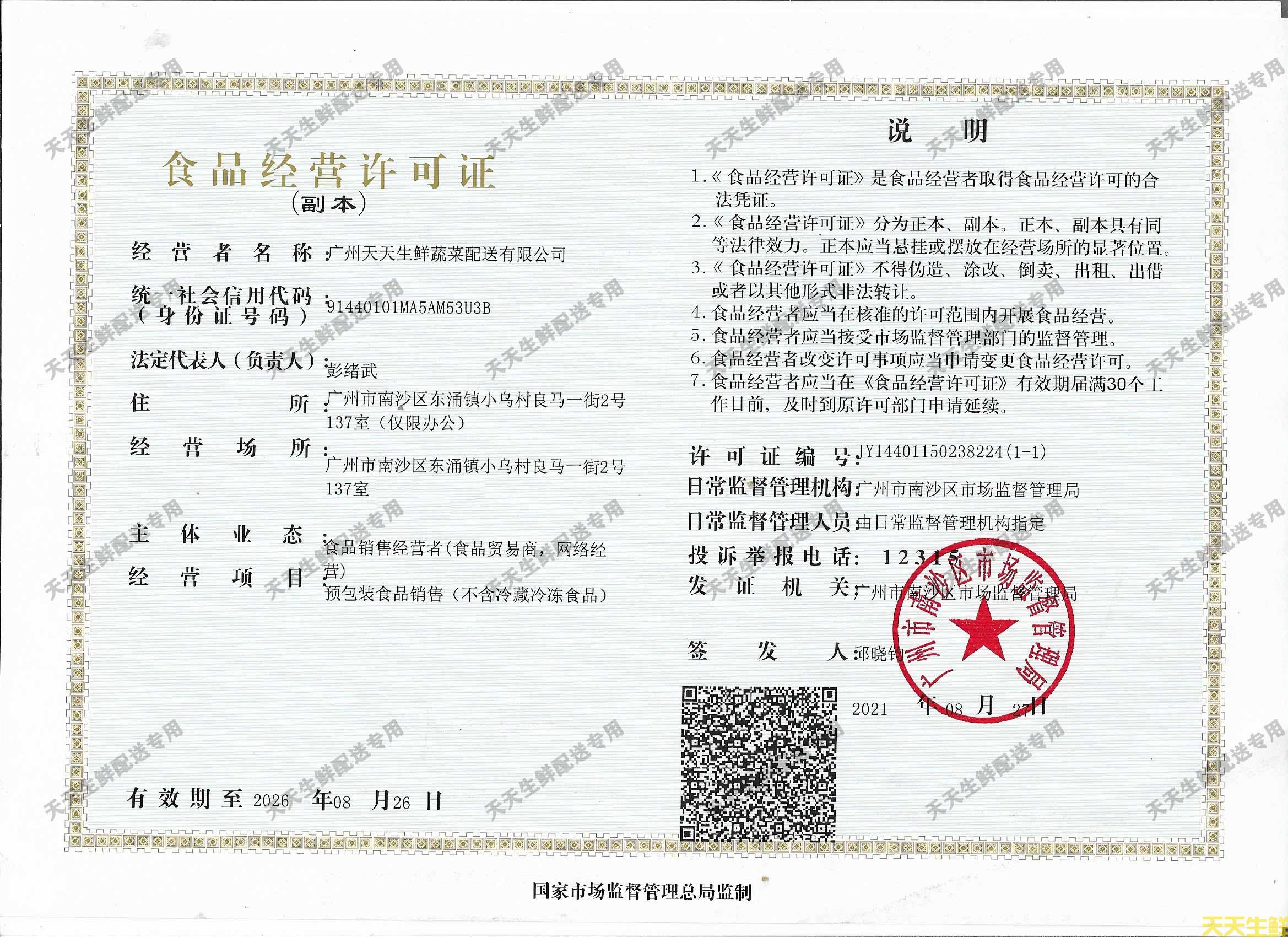 廣州天天生鮮蔬菜配送有限公司